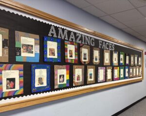 At a recent visit to the Eddy School in Brewster, Mass., this project unfolded beautifully! Not only did the fourth-grade students write about a beloved and familiar face from their own life, but they also created personalized frames for their poems in a wonderful hallway display!