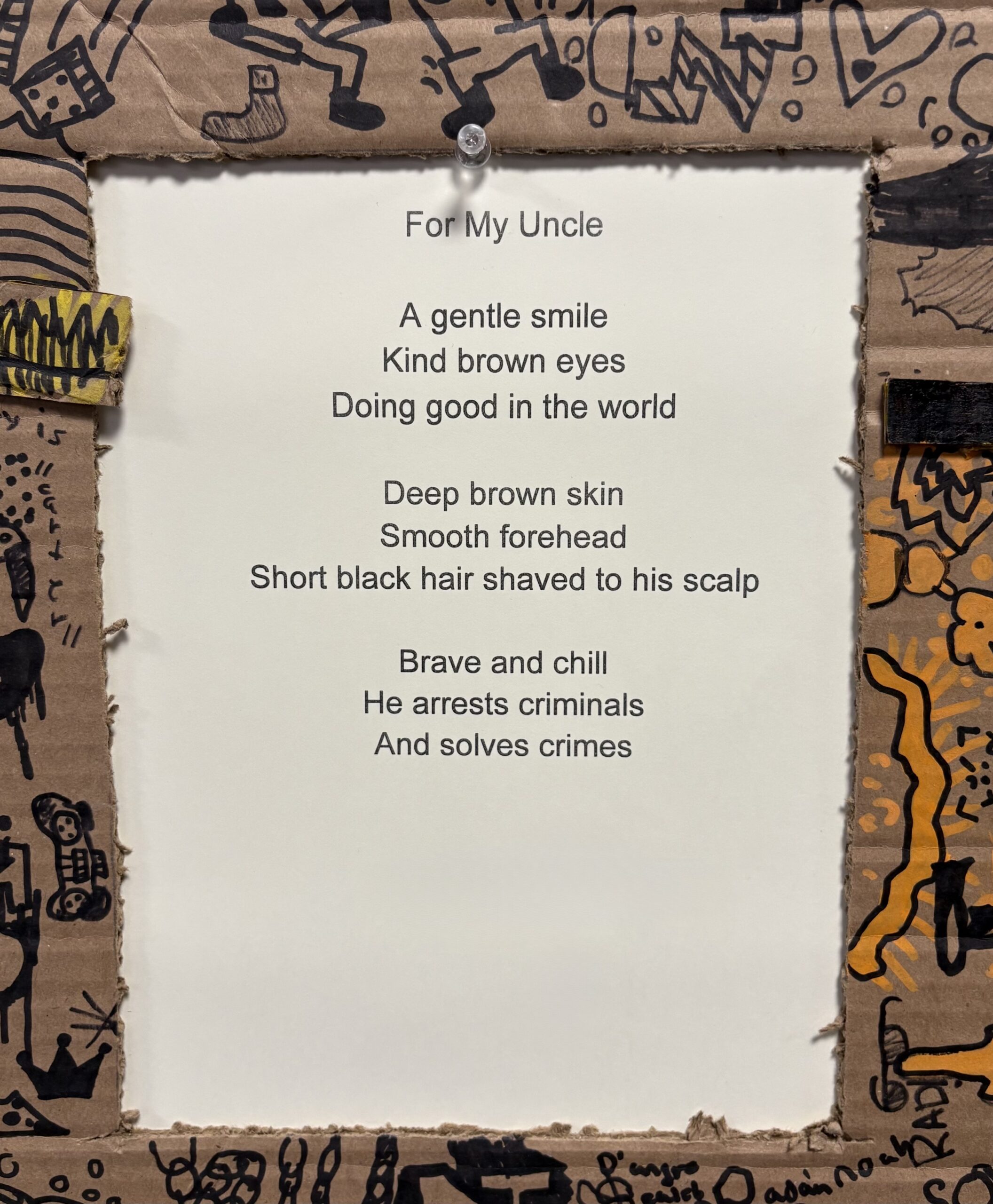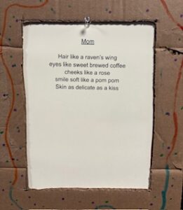 Many poems were accompanied by photos of those amazing faces. The poetry, the photos, the frames… it all added up to a display of love and connection, sparked by poetry and the book that Lee Bennett Hopkins created — Amazing Faces.